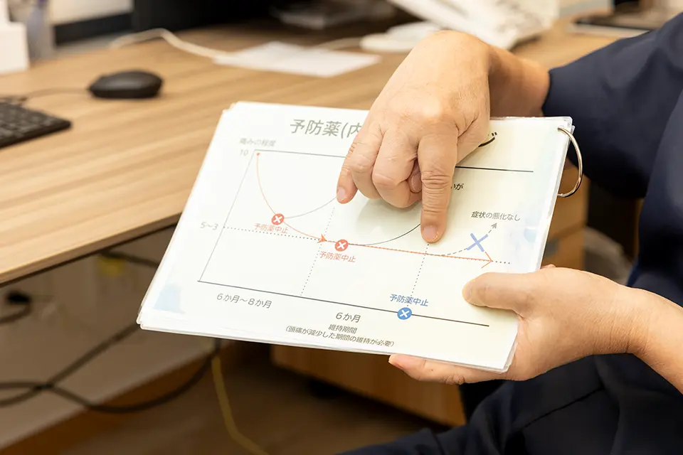 「頭痛を減らす」「薬を減らす」など、患者様の目標に沿った治療を計画します。