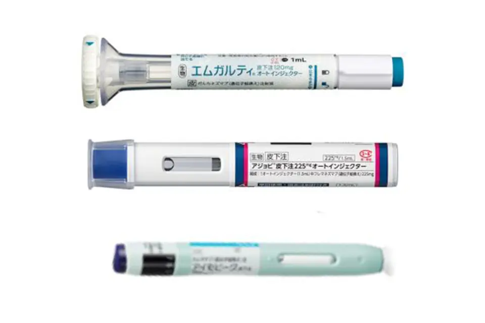 エムガルティ、アジョビ、アイモビーグなどの新しい注射薬です。
