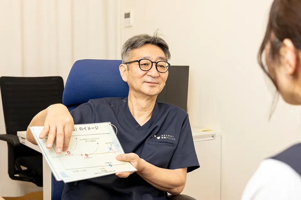 患者様の不安や疑問にもじっくりお答えし、納得いただいた上で治療を始めますので、初めての方も安心して受診いただけます。
